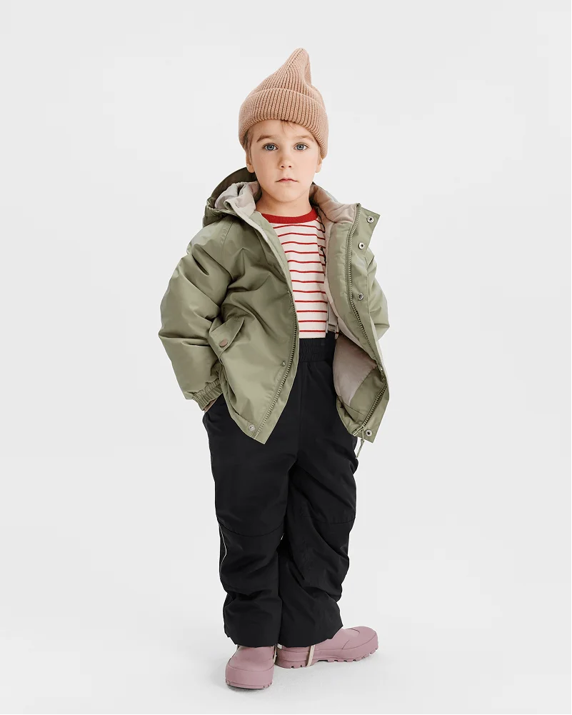 Мы сохранили тепло традиционных коллекций Leokid, но радикально снизили вес изделий: убрали лишний объём, оставив функциональное ядро. Современные технологичные материалы удерживают тепло, защищают от ветра и сырости и при этом сохраняют аккуратный силуэт.