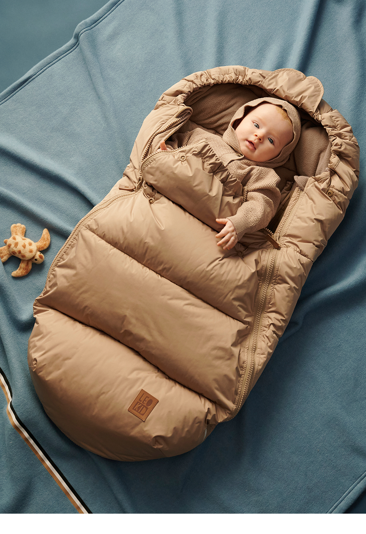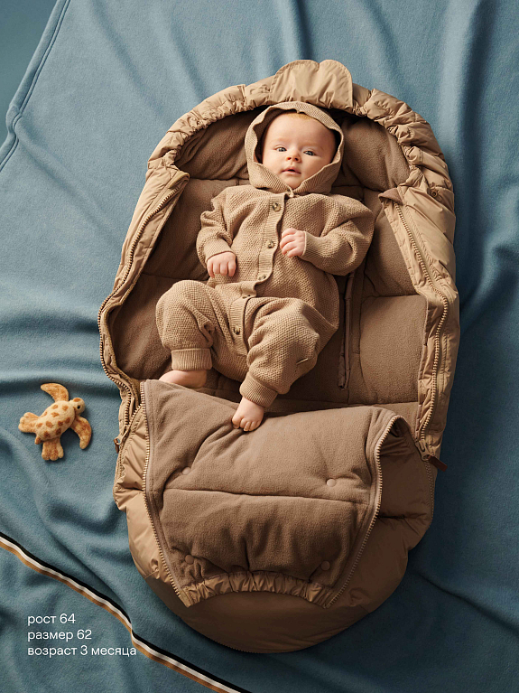 — удобные боковые застежки-молнии позволяют комфортно уложить малыша в конверт