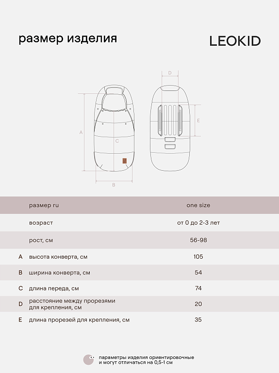 — удобные боковые застежки-молнии позволяют комфортно уложить малыша в конверт