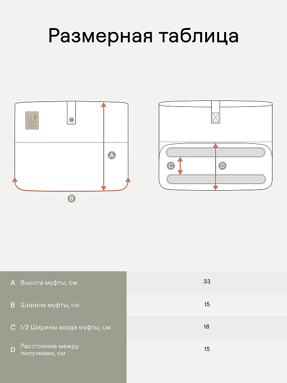 Муфта изготовлена из теплой, мягкой и дышащей ткани с водоотталкивающей пропиткой Bionic-Finish® Eco