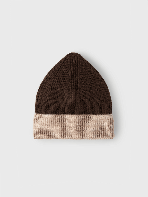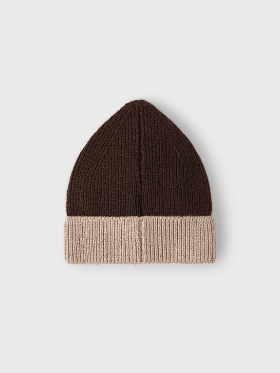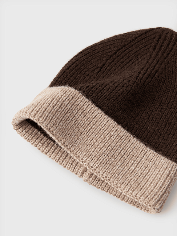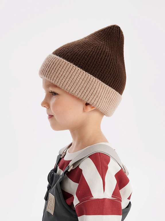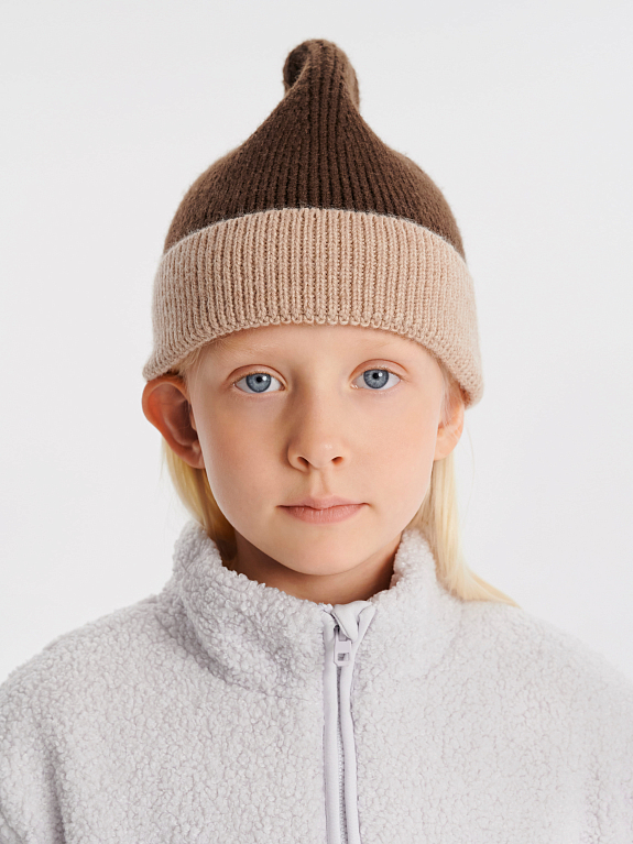 Вязаная шапка актуальной формы «бини», утепленная достаточным количеством шерсти, приятная на ощупь и удобная в носке.