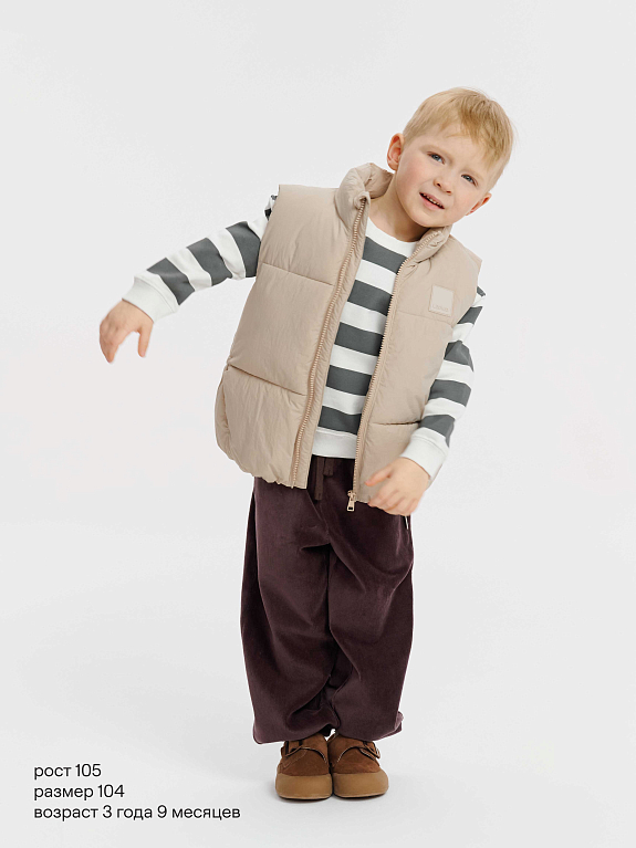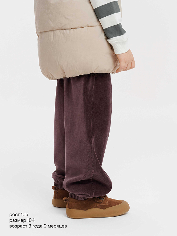 Главный претендент на место в трикотажной капсуле вашего малыша — брюки из мягкого вельвета.