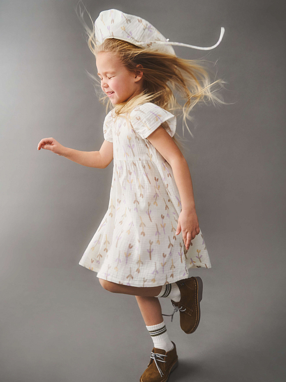 Платье Fiora из муслина — ткани, очень приятной на ощупь, гораздо более мягкой и легкой, чем хлопок.