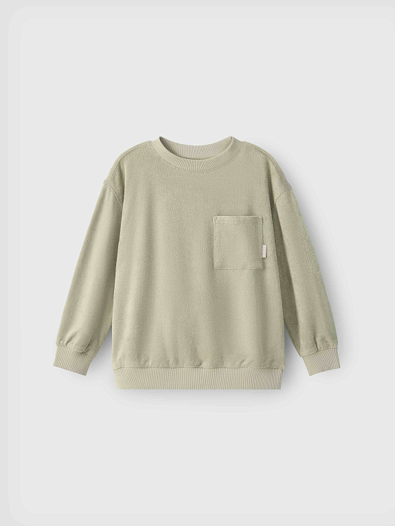 Комфортный крой оверсайз, спокойная цветовая гамма, накладной карман спереди, мягкие трикотажные манжеты на рукавах — детали, с которыми прогулки малыша станут еще приятнее.