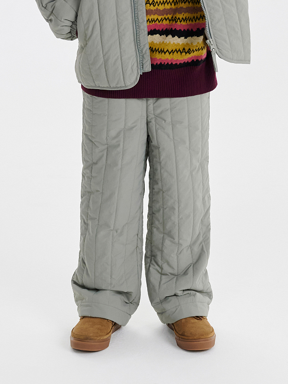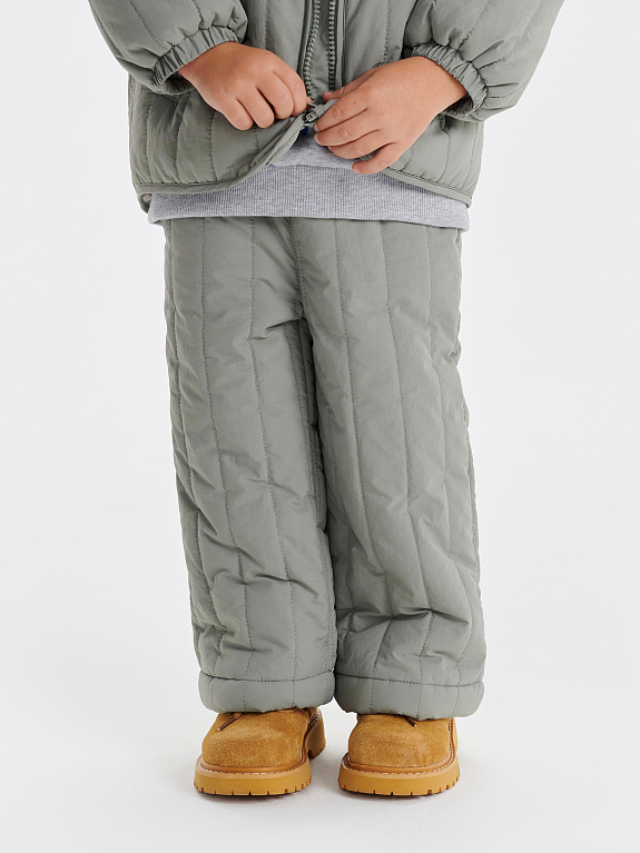 Стеганые брюки с жатым эффектом для юных модников. Образуют идеальный casual-образ вместе с курткой Dumi и панамой Kato. Могут похвастаться трендовой вертикальной стежкой, мягкой хлопковой подкладкой, легким утеплителем 100 г и универсальным стилем, который подружится с любой базой. Они не мнутся, не пачкаются и не пропускают влагу благодаря водоотталкивающей пропитке. Мягкая хлопковая подкладка позволяет носить изделие на голые ножки, а резинка на поясе — регулировать объем посадки.