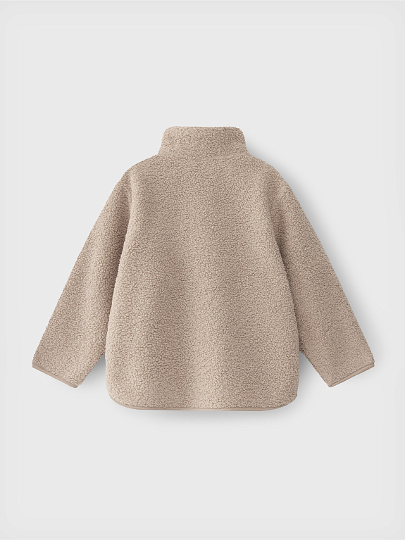 Имеются мягкие накладные карманы для детских ручек и воротник-стойка, защищающий горло от ветра.