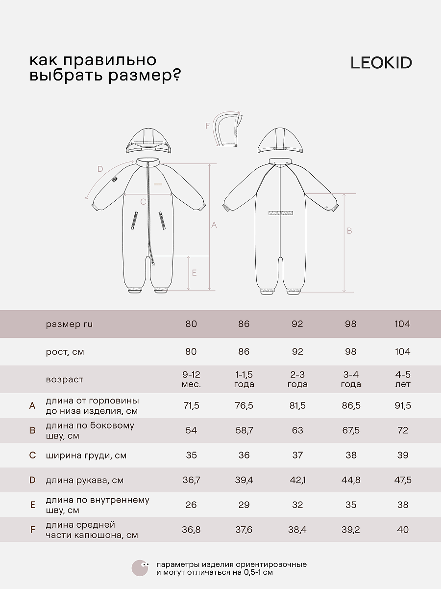 Хит нашей коллекции — демисезонный комбинезон с лаконичным дизайном и цветовыми акцентами на фурнитуре и капюшоне.