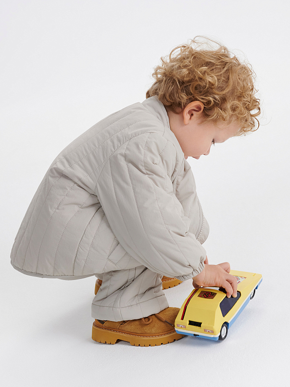 Стеганая куртка-фуфайка с трендовым жатым эффектом, как у модных взрослых. Идеально сочетается с брюками Kofi той же фактуры и панамой Kato. Из нее не хочется вырастать, поэтому мы выпустили ее в широком размерном ряду — от 12 месяцев до 11 лет. Снабжена легким утеплителем 100 г, водоотталкивающей пропиткой и гладкой подкладкой, чтобы без проблем носить ее со свитшотом. Комфортный прямой крой подойдет для детей любого телосложения, а удлиненная спинка защитит от сильного ветра.