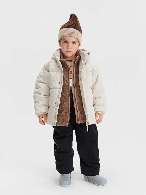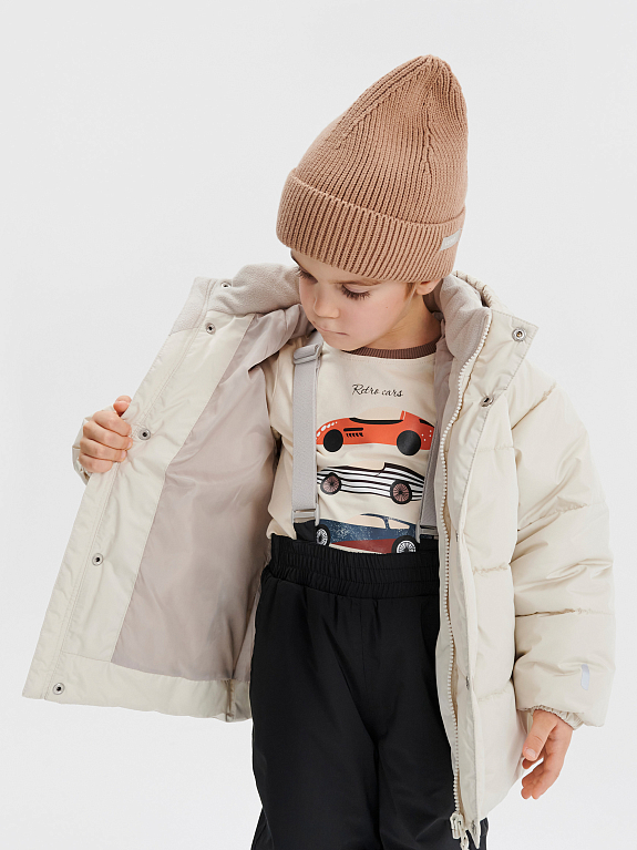 Наш бестселлер — утепленная куртка для холодной весны: с трендовым дизайном, комфортной посадкой и правильным количеством утеплителя, чтобы малышу было удобно двигаться. К новому сезону мы слегка усовершенствовали модель: удлинили спинку и добавили немного наполнителя, не в ущерб свободному крою. В ней не страшно гулять: несмотря на нежную палитру, грязь легко очищается благодаря умной водоотталкивающей пропитке. Капюшон отстегивается, а флисовая вставка на воротнике дарит мягкость и уют.