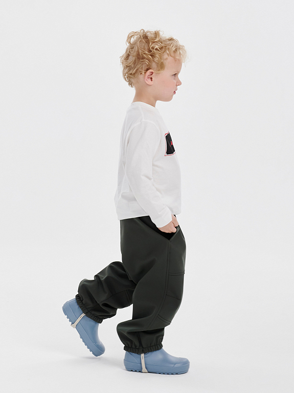 Их главный секрет — в волшебной трехслойной ткани: верхний слой защищает от воды и грязи, дышащая мембрана сохраняет одежду внутри сухой даже во время активных прогулок, а флисовая подкладка удерживает тепло и приятна на ощупь — можно носить на голые ножки. Мы сделали их не только функциональными, но и трендовыми. И пусть нежные оттенки вас не смущают — за ними легко ухаживать. Прочный материал выдержит до 40 000 стирок. Свободный крой и пояс на резинке подходит для детей разного телосложения.