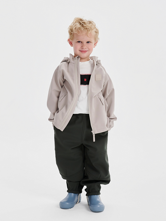 Удлиненная куртка из умной ткани Softshell: если станет холодно, она сохранит тепло, а если жарко — обеспечит комфортную температуру без перегрева. Идеальный комплект вместе с брюками Softshell из того же трехслойного материала. Эту модель мы придумали для погоды, когда совсем не хочется гулять: верхний слой защитит от воды и грязи, дышащая мембрана сохранит одежду внутри сухой даже