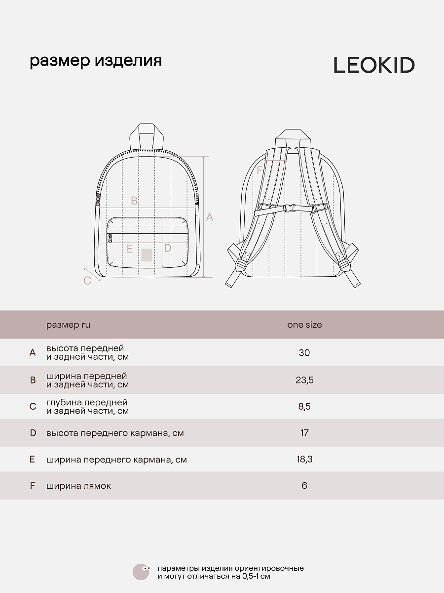 Первый рюкзак малыша. Придуман специально для дошкольников, но уже обладает стильным дизайном, как у взрослых. Его главная чудо–особенность — продуманная посадка. Благодаря дополнительной горизонтальной лямке на груди он не спадет с плеч, а внутри поместятся все сокровища. Выполнен из мягкой, но прочной ткани с водоотталкивающей пропиткой. Мягкие лямки можно отрегулировать, а на специальной бирке — указать имя ребенка и телефон, чтобы потерянный рюкзак быстро нашелся. Компактный размер идеален для поездок, садика и прогулок.