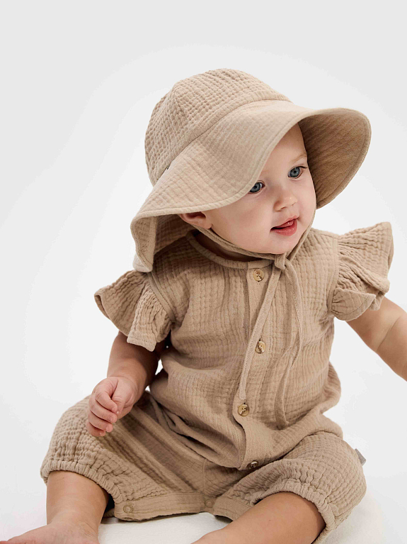 Эту модель в универсальном бежевом оттенке мы разработали специально для девочек, а логичным дополнением к ней станет панама Sona из идентичного материала.