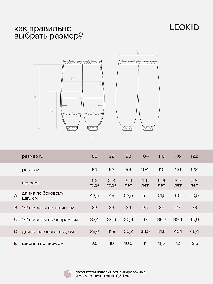 Их главный секрет — в волшебной трехслойной ткани: верхний слой защищает от воды и грязи, дышащая мембрана сохраняет одежду внутри сухой даже во время активных прогулок, а флисовая подкладка удерживает тепло и приятна на ощупь — можно носить на голые ножки. Мы сделали их не только функциональными, но и трендовыми. И пусть нежные оттенки вас не смущают — за ними легко ухаживать. Прочный материал выдержит до 40 000 стирок. Свободный крой и пояс на резинке подходит для детей разного телосложения.